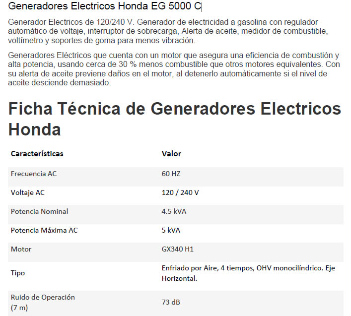 Generadores Electricos Honda